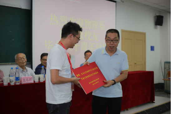 校友师生座谈会在格致楼1001报告厅举行。1001报告厅承载了一代一代物理人勤学奋进的往事,校友们在此找寻当时上课的座位,回忆学生时期的美好时光。吴国军对校友毕业20年之际重回母校表示热烈欢迎,并详细介绍了学院在人才培养、学科建设、科学研究、综合改革、社会服务等方面取得的成就。他指出,学院正在加快综合改革和一流学科建设,学院的进步和发展,凝聚了校友们的深情厚意,所取得的每一份成绩离不开校友们的关心和支持他希望校友们常回“家”看看,一如既往的关注、支持和帮助学院的建设与发展。