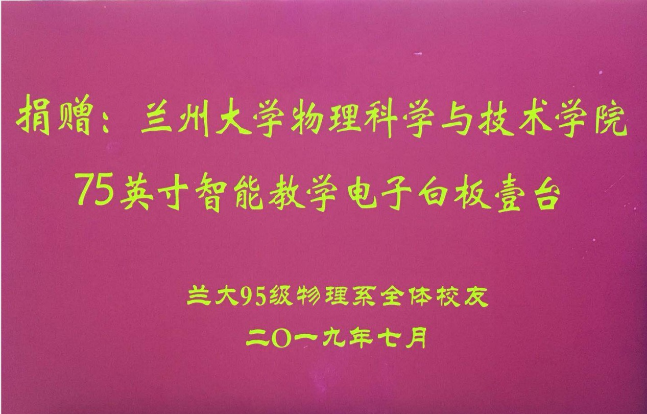 1995级物理系校友为学院捐赠75英寸智能教学电子白板一台