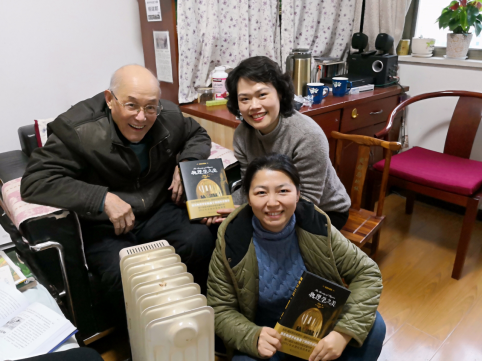 图为杨建邺校友(左)与龚阿玲、姜静的合影