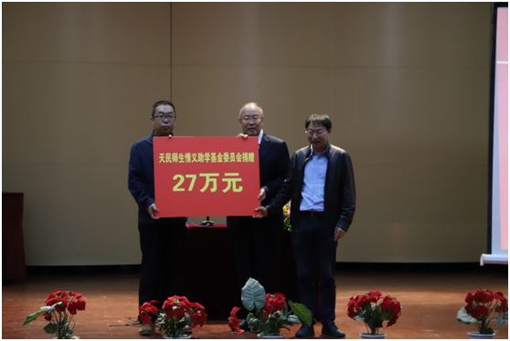 王天民老师代表各界爱心人士再次向基金捐资27万元,学院党委书记吴国军和院长罗洪刚代表学院接受捐款。