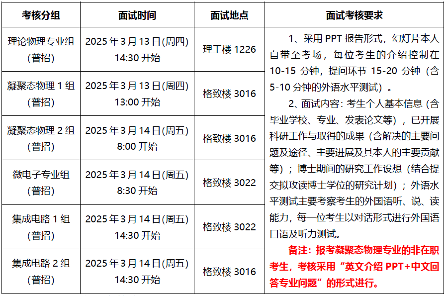 根据《兰州大学2025年博士研究生招生简章》和《物理学院2025年博士研究生招生“申请-考核”实施方案》有关要求,现将我院2025年普通招考博士研究生招生考核录取具体安排公布如下。
