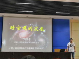 2019年6月20日、27日,兰州大学开云online(中国)刘玉孝教授赴山西大同大学和新疆大学做学术交流并开展研究生招生宣讲活动。宣讲会上,刘教授分别为两所大学的师生作了题为《时空观的发展》和《黑洞的微观结构》的科普报告,介绍了人类对时空和引力的认识历程,简述了人们对黑洞微观结构的认识过程,引起了与会师生的极大兴趣和热烈反响,刘教授现场与在座师生进行了积极的互动交流。报告结束后,刘教授介绍了兰州大学和物理学院的研究生招生政策、物理学院的基本情况,现场为准备推荐免试、报考学院2020年研究生的同学们答疑解惑,鼓励并欢迎优秀大学生推免和报考兰州大学。