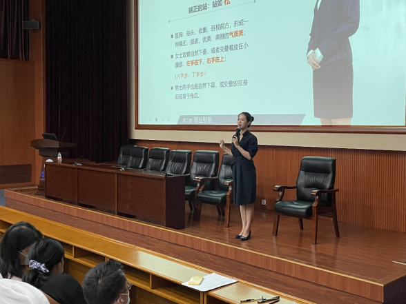 会议邀请中国职业教育和职业培训协会认证高级礼仪培训师、兰州大学大学生礼仪工作室讲师蔺丹老师为同学们带来了开云登陆入口会议服务礼仪规范的专题讲座,就礼仪形象和服务礼仪等进行了全面而又专业的分享,并为同学们带来了细致实用的服务技巧讲解和演示。