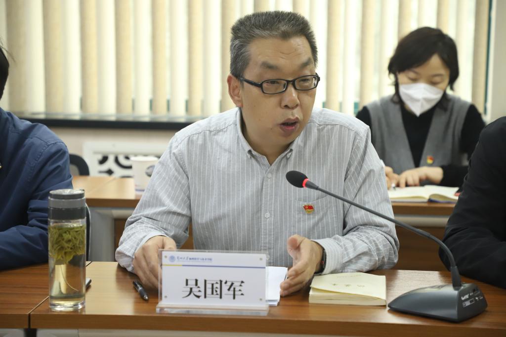 会上,吴国军书记介绍了学院主题教育工作推进情况,并做了动员讲话。他指出,习近平新时代中国特色社会主义思想是中华文化和中国精神的时代精华,是党和人民实践经验和集体智慧的结晶,是全党全国各族人民为实现中华民族伟大复兴而奋斗的行动指南。深入开展学习贯彻习近平新时代中国特色社会主义思想主题教育,是全面学习、全面把握、全面落实党的二十大精神,是推动贯彻落实二十大报告开云登陆入口教育、科技、人才“三位一体”的战略部署,落实立德树人根本任务,引领全校师生胸怀“国之大者”,提升干事创业精气神,统一思想意志行动,凝聚事业发展合力,坚定不移在西北办好中国特色、世界一流大学,具有十分重要的意义。他对学院主题教育工作提出了四点要求,一是要切实提高政治站位,把主题教育作为重大政治任务来对待,以思想自觉引领行动自觉,以行动自觉深化思想自觉,以工作成效体现主题教育效果。二是要牢牢把握“学思想、强党性,重实践、建新功”的总要求,全面落实学校各项安排和要求,抓细抓实主题教育各项任务落实。 三是结合学院工作实际,抓好经常性教育,广泛开展调研,深刻检视问题,整改落实到位,对准目标有力有序有效推动主题教育深入扎实开展。四是加强组织领导,书记带头示范,党政班子成员主动表率,支部落实主体责任,形成“一级抓一级,层层建新功”的工作格局,努力确保主题教育取得实效。