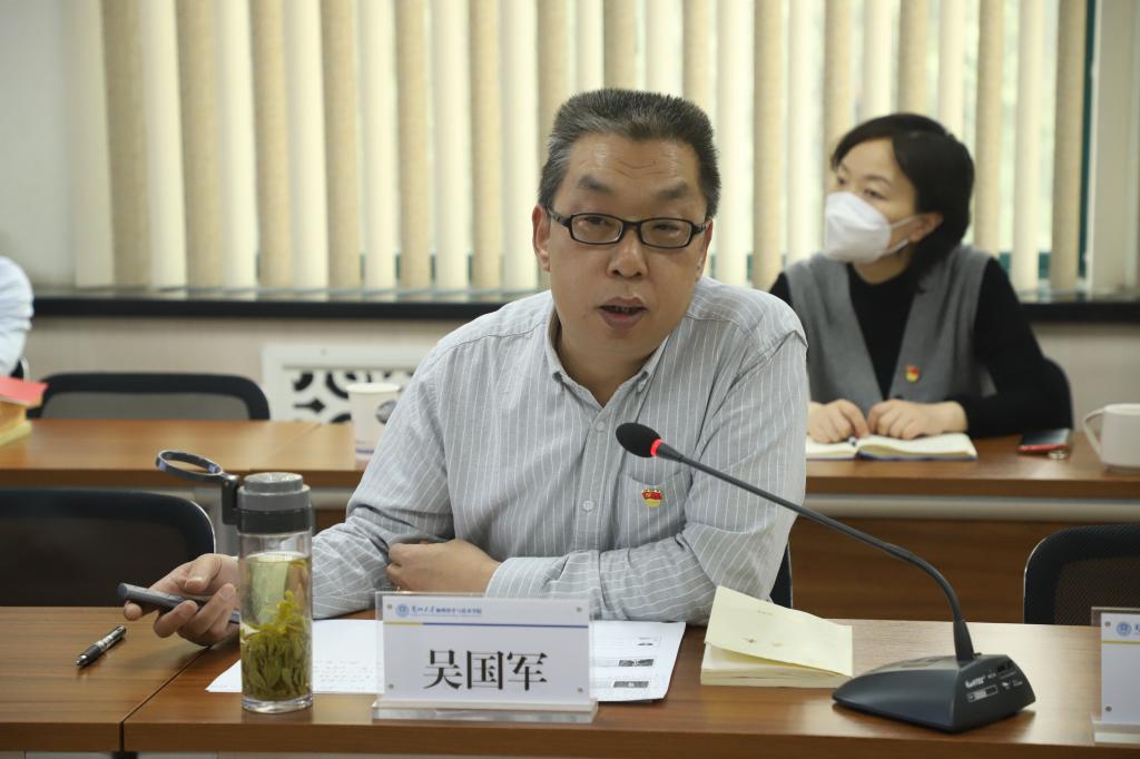 吴国军书记还介绍了学院主题教育读书班安排,他强调,党的二十大报告明确指出,“十个明确”、“十四个坚持”、“十三个方面成就”是对习近平新时代中国特色社会主义思想主要内容的概括。我们既要全面系统地学习掌握这些主要内容,又要整体把握这一思想的科学体系,做到融会贯通。要按照 “学思想、强党性、重实践、建新功”的 总要求,对各领域提出的新理念、新思想、新战略,对各方面工作提出的新举措,放在整个科学体系中来认识和把握,避免碎片化、片面性,不能只见树木、不见森林。要把集中学习与自学相结合,理论学习与实践活动相结合,积极开展交流研讨与调查研究,确保读书班取得实效。