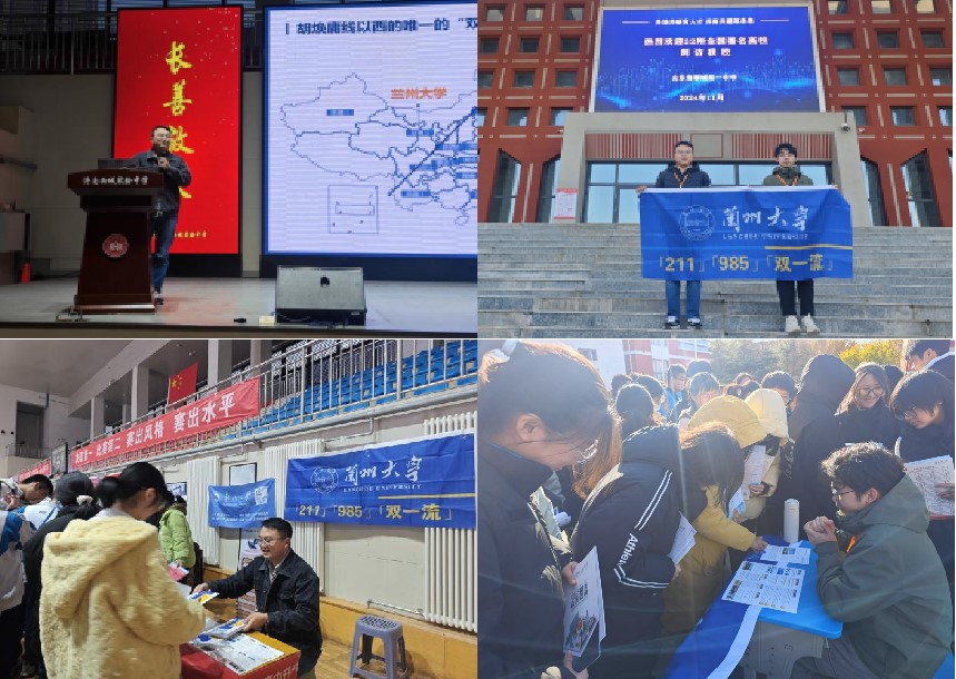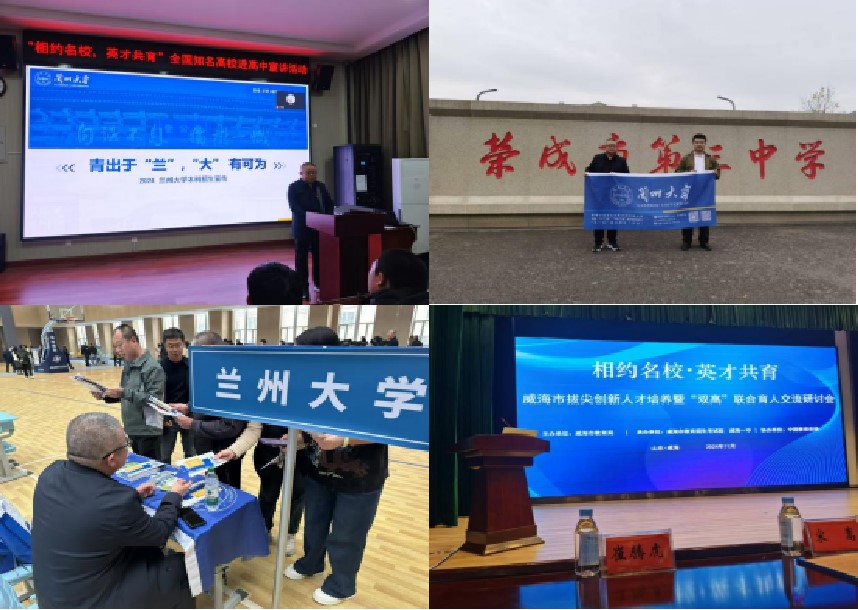 在威海地区,崔腾虎参加了威海教育局主办、威海市教育考试院和威海一中协办的“‘相约名校、英才共育’威海市拔尖创新人才培养暨‘双高’联合育人交流研讨活动”,威海市教育局的调研座谈会,并走访了威海一中、乳山一中、荣成三中和文登一中四所中学开展了一系列招生宣传活动,通过招生宣讲、咨询和座谈等活动,引导威海地区的老师、家长和优秀学子们了解和关注兰州大学。