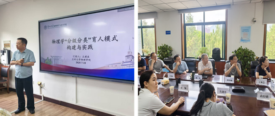 座谈会上,王建波作了《物理学“分级分类”育人模式构建与实践》的专题分享,从学院概况、学院人才培养思路、培养成效及实操路径四个方面进行了全面展示,陈敏教授围绕分享内容从专业建设、教学改革、存在问题和发展需求等方面开展深入交流。聚焦教学成果奖申报的关键问题,陈敏教授从“真问题、实改革、强证据、精表达”四个方面提供了从选题到材料打磨的系统方法,强调教学成果的本质是教育实践的真实变革,而非文本包装;提出选题应紧扣政策热点和学科前沿,聚焦国家教育战略方向;在成果呈现方面,陈敏教授指出要避免数据堆砌,强调建立“问题-措施-效果”的闭环逻辑。物理学科作为基础学科,要勇于承担拔尖创新人才培养改革的先锋使命,陈敏教授特别强调,教学成果奖的核心是学生成长轨迹的改变,所有证据应当指向学生发展。