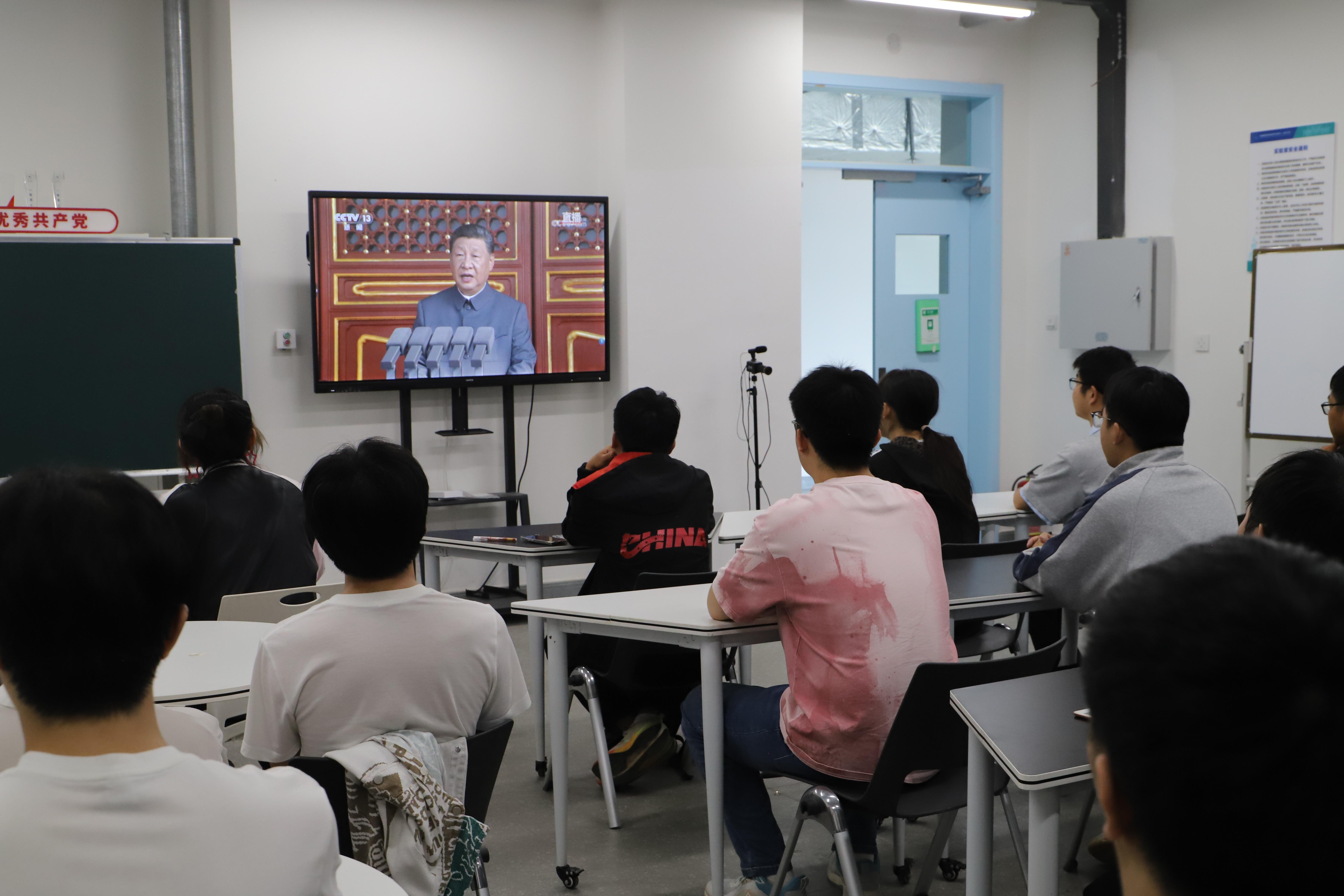 学院班子成员、党委委员、师生党员在城关校区格致楼收看大会直播