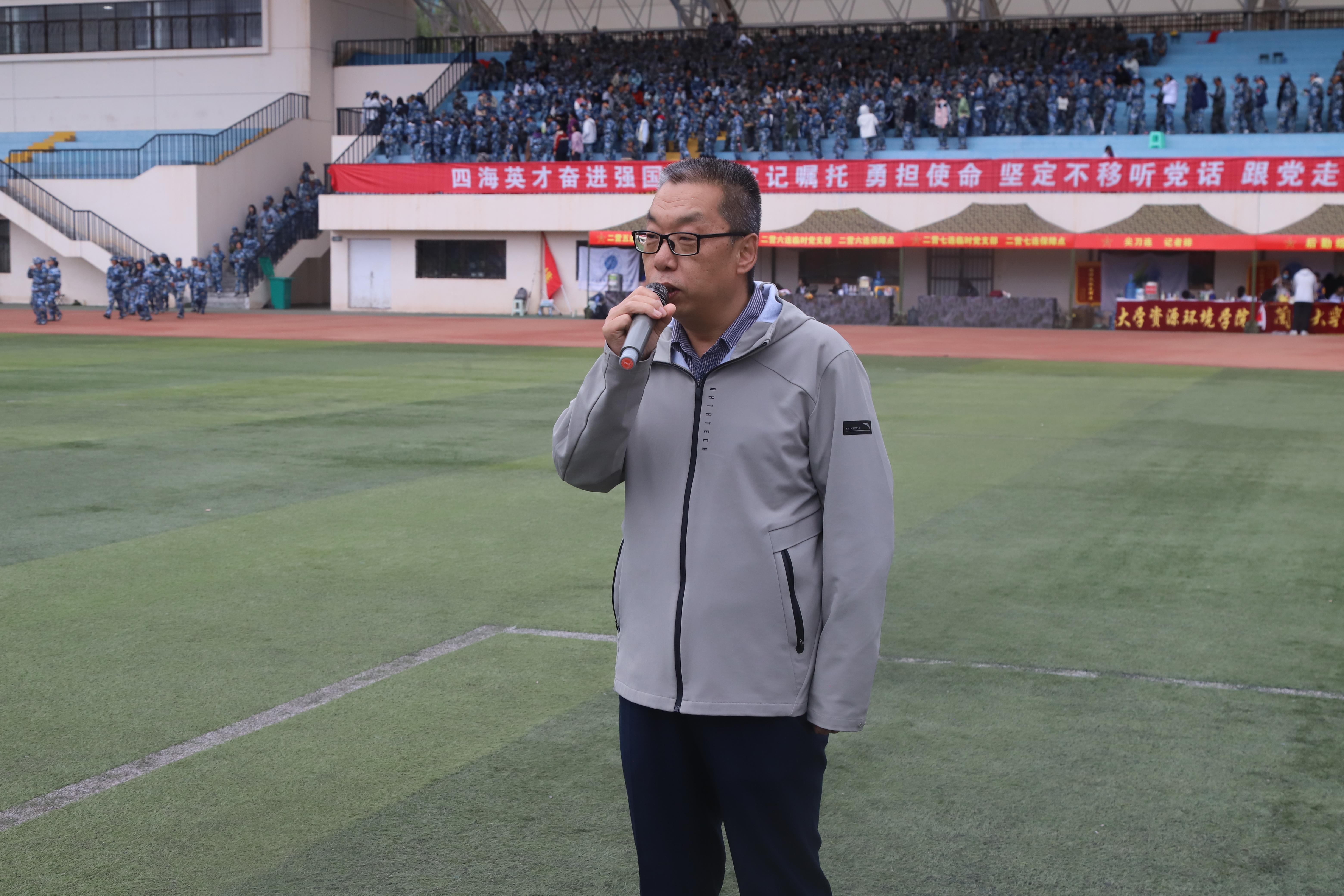 吴国军代表学院向全体参训新生致以亲切问候,对同学们在训练中展现出的坚韧意志和昂扬姿态给予了高度认可,并结合学院专业特色与新生成长需求,对同学们提出了殷切期望。在学习方面,他希望同学们能将军训中培养的坚韧品格、吃苦精神和自律意识融入到未来的专业学习中,主动探索、勇于攻坚,不断提升专业素养和创新能力;在生活方面,他叮嘱同学们要养成良好的生活习惯,注重宿舍卫生整洁,营造和谐融洽的宿舍氛围,以健康的身心投入到学习和生活中。