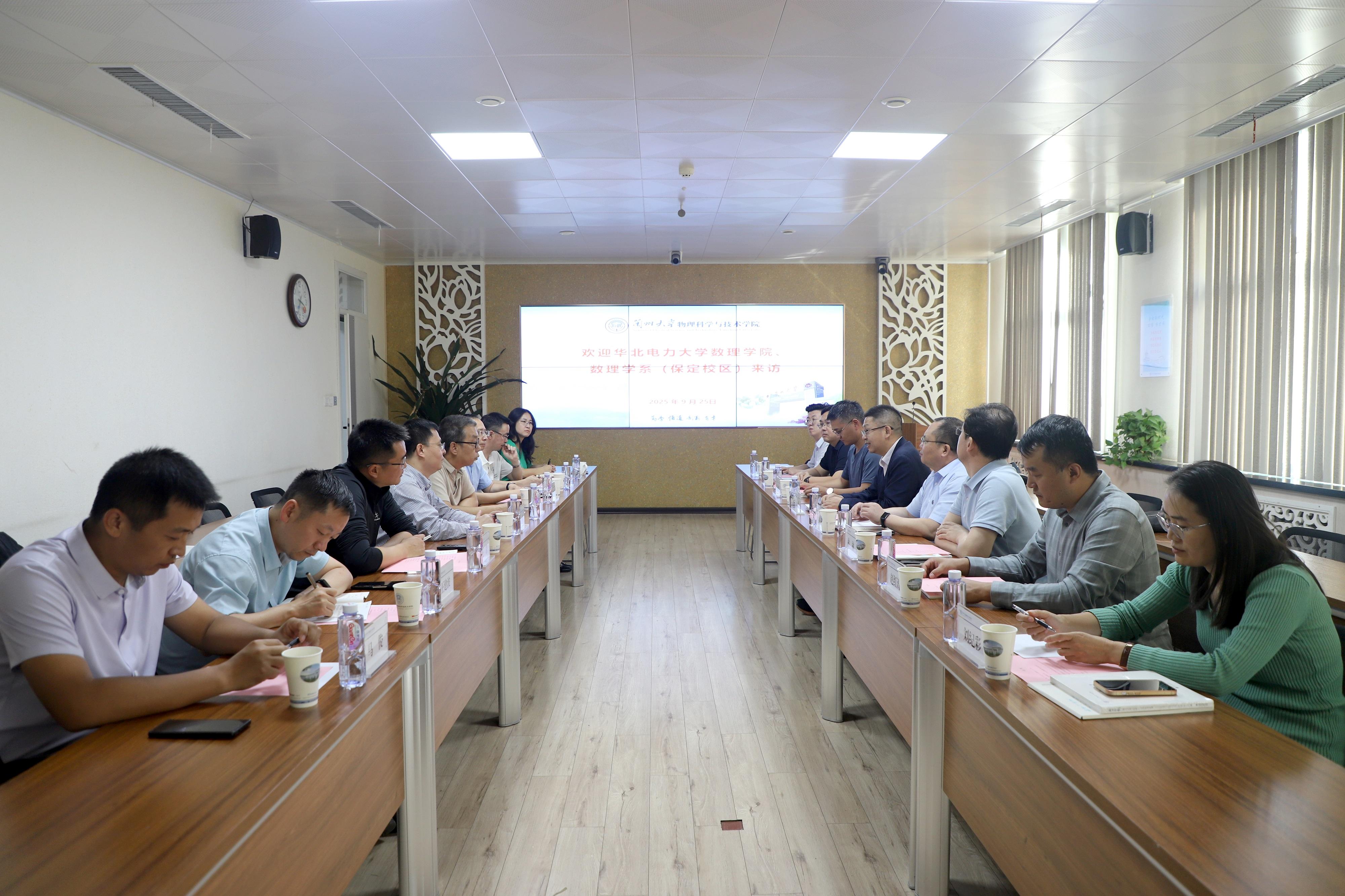 9月25日下午,华北电力大学数理学院党委书记包小勇,执行院长田永辉,党委副书记林林,副院长刘纪彩、赵红涛,团委书记王炜,数理系(保定校区)主任阎占元,副主任王涛一行来院访问交流。物理学院党委书记吴国军,院长刘翔,副书记、副院长李星波,副书记王岩,副院长王建波、刘玉孝,办公室主任马俊,团委书记张晓晓等参加会议。
