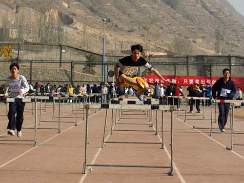 随着《运动员进行曲》的响起,各学生会部门都承担起了自己的工作,紧张有序的进行,运动员也都提前检录,自信的微笑洋溢在年轻的面庞。跨栏运动中,运动员矫健的身姿在视野中跳动,彰显着他们年轻的活力,谁说女子不如男,她们便是赛场上的铿锵玫瑰;短跑运动员以迅雷不及掩耳之势在跑道上划过一道弧线,身边托起一阵狂舞的旋风;长跑运动员用其马拉松式的勇气与毅力,不仅征服了终点线,更征服了每个人内心的怯懦。他们才是真的猛士,敢于直面惨淡的赛场,敢于挑战运动的极限;接力赛中每名运动员都奋力拼搏,只因他们是团队中的一份子,团结合作是他们的指挥棒;竞技者运用技巧,健步如飞,超越自我。三级蛙跳愈跳愈远,跳高愈跳愈高,掷铅球更是不甘示弱。观看台上的拉拉队时而欢呼雀跃,时而捶胸顿足,他们的心情也随着运动员的表现如山峦般时起时伏。数不尽的精彩,道不尽的感动,一时间在充满着竞技气氛的体育场上怒放。远处的和煦的阳光早已洒遍兰大校园,所有人的心中都是暖暖的。