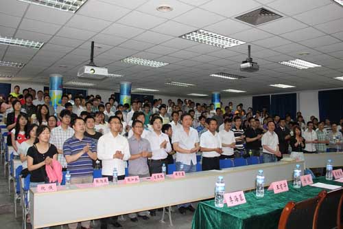 随后,薛德胜院长与同学们一起回顾了学院在近四年的发展中获得的成果和业绩,他说学院的长足发展为同学们提供了良好的培育平台,而学院的持续发展也离不开同学们的努力和支持,因此他对2012届毕业生近四年来取得的成绩感到欣慰和骄傲,也对毕业生们离校后的大展宏图满怀期待。随后,他对即将离校的毕业生提出了两点希望:一、志存高远,终身学习;二、正确看待人生成功和发展机遇。最后,薛院长以一句“岂能尽如人意,但求无愧于心”作为结尾祝毕业生们今后的生活一路顺风,有时间常回“家”看看。