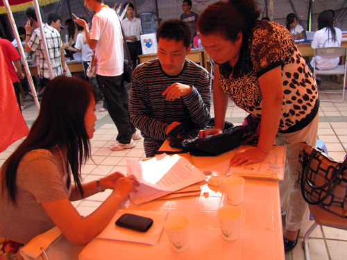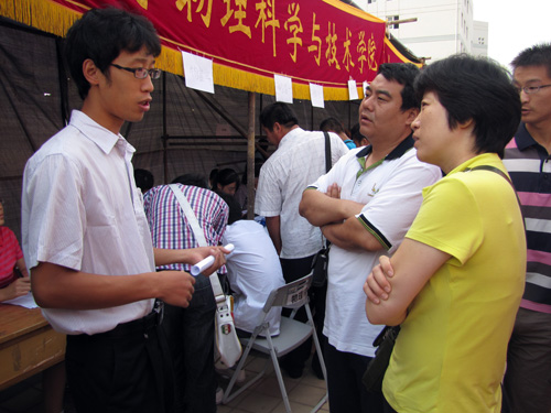 迎新家长会后,院党委书记杨毅、院长薛德胜、党委副书记王斌来到迎新点看望迎新志愿者。下午5时,随着最后一名新生报到注册,我院2011年迎新工作圆满结束,迎新的工作人员们脸上都露出了欣慰的笑容。