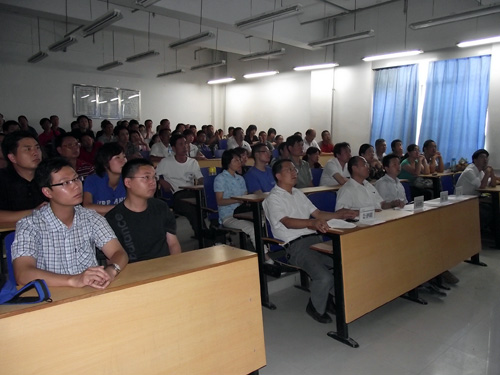 首先,院长薛德胜教授向各位家长介绍了学院整体概况。薛德胜向学生家长展示了物理学院自1946年以来悠久的历史和雄厚的基础,并简单介绍了物理院的发展状况和各专业的具体情况。随后,他向家长们详细介绍了学院的师资队伍和设备情况,并利用PPT演示了学院的硬件设施。而后,他介绍了“国家基础学科拔尖学生培养实验计划”的具体内容。薛德胜还强调,家长与老师应该合作起来,在学习和德育上共同把孩子培养成社会的栋梁之才。并且建议家长们相信孩子,多行使建议权而不是决定权;在期末多与孩子们沟通在校情况,培养学生独立自主的生活习惯。