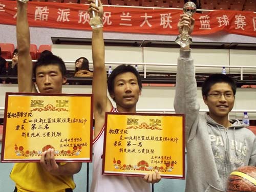 10月30日19:00,兰州大学新生篮球联赛决赛在榆中校区体育馆进行。这场物理院和基础医学院之间的巅峰之战,吸引了来自全校各院的观众。经过两个多小时的鏖战,我院终于以63:53的比分赢得了比赛的胜利。继夺得本年度学校篮球联赛亚军之后再创佳绩。