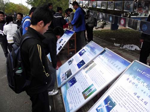 视野小广场上,长长的图片长廊展示了我们目之所及的各种身边物理现象,引得一位小朋友也注目连连,不时好奇地询问,学长就热心地为小朋友讲解。同时,因为恰逢我国第一目标飞行器“天宫一号”成功发射,本次活动还新增了一个“中国现代航天器发展史的图片展”,展示了我国航天发展史的青铜时代,白银时代和黄金时代。另外,现场还设置了开云登陆入口物理知识的有奖问答活动,可以现场报名参加,每答对一道题就会得到一个小礼品。尽管阴雨连连,天气寒冷,视野小广场上还是聚集了很多热爱物理的学子们。许多同学早已摩拳擦掌、跃跃欲试了。上午10点左右,越来越多的同学来到了现场,参与到了活动中。现场气氛活跃,不时听得到同学们因答对题目的欢呼声。