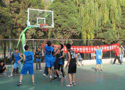 为增进学院各研究所同学之间的友谊和认识,提高各课题组凝聚力,发扬团队精神,经学院研究生会的精心组织,各研究所于10月16日到25日在本部篮球场演绎了一场场精彩的篮球比赛。此次比赛共有6支球队,小组赛以单循环赛的形式进行。低维材料与微观磁性研究所,电子材料研究所,等离子与金属材料研究所,微电子研究所最终进入淘汰赛。激烈角逐后,等离子与金属材料研究所和电子材料研究所争夺冠军。比赛伊始,队员迅速投入比赛,个个雄姿英发,帅气利索;啦啦队也喊得气势磅礴,为场上的队员呐喊助威,现场的气氛十分活跃。最后,电子材料研究所以三分的优势险胜等离子与金属材料研究所,赢得比赛的冠军。此次比赛顺利开展,为大家提供了一个相互交流的平台,丰富了同学们的课余文化生活,培养了集体荣誉感,增进了各所之间的友谊,展示了团结、和谐、勇于拼搏的精神风貌。