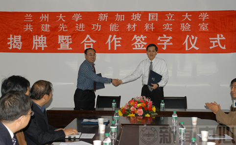 10月9日上午,兰州大学与新加坡国立大学共建先进功能材料实验室揭牌暨合作签字仪式在物理楼举行。我校副校长徐生诚,开云online(中国)党委书记杨毅、院长薛德胜,新加坡国立大学材料科学与工程系系主任周经武和丁军、陈景升博士出席了签字和揭牌仪式。