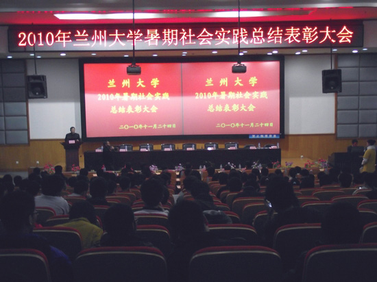 11月24日下午4:30, 2010年兰州大学暑期社会实践总结表彰大会在天山堂C区302报告厅隆重举行。校党委副书记李恒滨、党委宣传部部长杨建文、学生处处长石兆俊、校团委书记安俊堂、校长办公室副主任曹国林、教务处副处长郭明宙、学工部副部长陈建恩、校团委副书记马树超等领导参加本次大会,参加大会的还有获奖师生代表,部分学生团干部及各院学生代表。本次大会由校团委副书记姚志海老师主持。