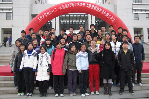 为了深刻缅怀“一二?九”运动革命先辈,大力弘扬“一二?九”运动革命精神,以此激励我们为中华民族的伟大复兴建功立业,并号召广大同学积极进行冬季健身,强身健体。在校学生会的组织下兰州大学纪念一二九运动七十五周年火炬接力赛在榆中校区举行。我院党委副书记王斌、团委书记陈洁、团委副书记傅丽萍、靳瑞明亲临比赛现场为我院参赛队员鼓劲加油。最终我院获得了第四名的好成绩。