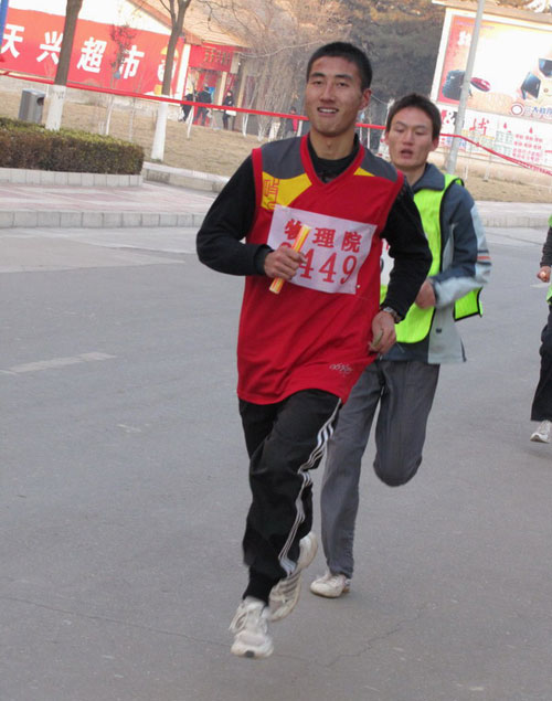 随着发令枪声的响起,运动员们各个如离弦之箭从起点冲出,在场人员也大声地为运动员加油。第一棒结束后,物理院代表队紧随第一集团。随着比赛的不断进行,场上各学院代表队的名次发生了很大的变化,但物理院代表队始终处于领先地位。最后,伴着物理院代表队的最后一名运动员——项晓天一鼓作气,奋力冲过终点线的瞬间,物理院代表队顺利取得了全校第四的优异成绩。