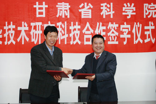 兰州大学副校长陈发虎和甘肃省科学院副院长刘国汉分别代表双方在协议书上签字。