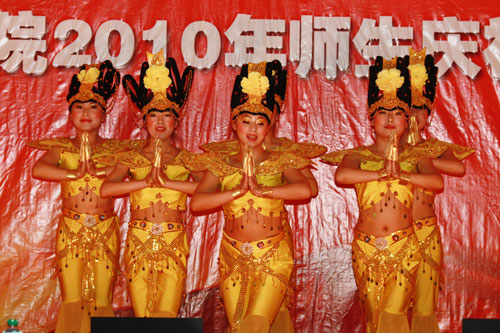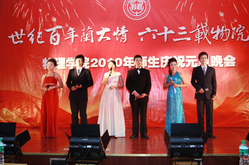 12月31日晚,物理学院2010年师生迎新年文艺晚会在飞云楼报告厅举行。物理学院党委书记杨毅,副书记景泽明、王斌,物理学院副院长刘肃,王育华出席并观看了晚会,学院教师及学生约400多人共同观看了晚会。