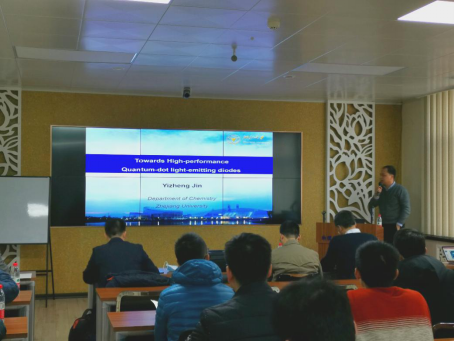 金一政研究员从自身研究出发,从量子点电致发光器件的机理入手,解释了器件中激子形成和复合等基元过程,研究与器件寿命相关的原位化学过程。在此基础上金一政研究员针对性的设计新型器件结构,详细说明了这一高性能电致发光器件的结构原理。本次报告深入浅出,极大地拓宽了学生的眼界。在精彩的报告结束后,参会的老师和同学们与金一政研究员积极互动,与会师生获益匪浅。
