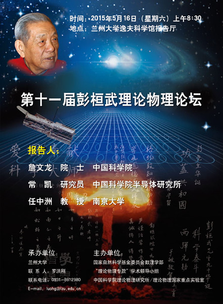 彭桓武理论物理论坛是理论物理专款支持的主要项目之一,是中国理论物理学界缅怀彭桓武先生,学习彭桓武先生学术思想和科学精神的重要学术活动。论坛将邀请学术界资深专家根据理论物理发展的前沿和最新研究结果,作相关学术报告和其他学术活动。这些活动将进一步加强理论物理内部各领域之间的学术合作与学术交流,加强理论物理和数学、生物、化学、地学、天文以及应用学科的交叉合作。