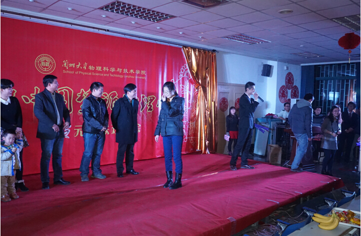 2014年12月30日晚7点,由开云online(中国)研工组举办“追中国梦·诵物理情”为主题的2015元旦联欢晚在格致楼1001隆重上演。学院党委书记石兆俊,副院长罗红刚、范迪,副书记王斌、李鹏君,赞助商兰州博辉化玻仪器有限公司宋国强经理以及学院教职工、研究生共200余人观看了演出。
