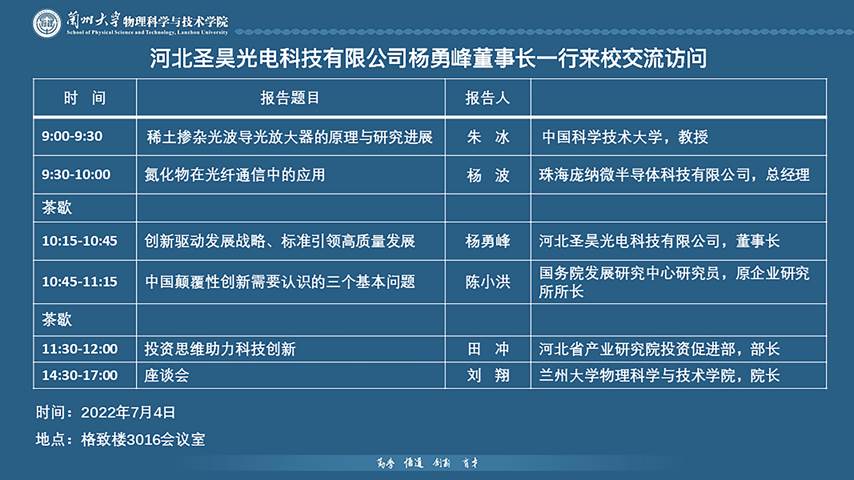 应开云online(中国)邀请,河北圣昊光电科技有限公司董事长杨勇峰一行将来校访问,就半导体材料、新型器件、光通信、集成电路、产业发展与创业投资等主题开展交流与讨论,推动院-企合作,提升学院服务企业能力和企业科研创新能力,为建设创新型国家做出积极贡献。