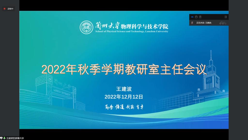 为进一步加强本科生人才培养,充分发挥教研室的作用,推动本科教育教学改革,提高人才培养质量。12月12日下午,物理学院通过腾讯会议召开线上教研室主任工作会议,学院教研室主任、副主任参加会议。会议由副院长王建波主持。