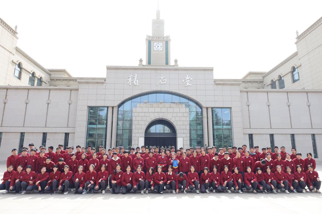 师生们在积石堂前合影留念,为期半天的校园参观学习活动给青岛市高级实验中学的师生留下了深刻的印象。物理学院积极筹划,认真准备,通过科普知识讲座、校史馆参观、实验室参观等内容深深吸引了大家。