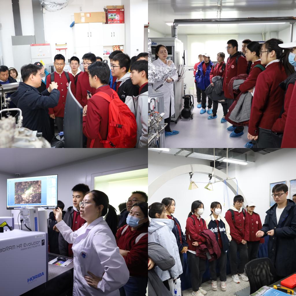 活动第三站,师生们来到磁学与磁学材料教育部重点实验室,讲解老师向同学们重点讲述了实验室的仪器设备配置、主要研究方向、所承担的课题研究项目等情况。同学们表示,能够近距离接触这些先进的科研仪器与设备非常激动,同时通过老师对于仪器的讲解,拓展了对物理知识的认识,收获满满。
