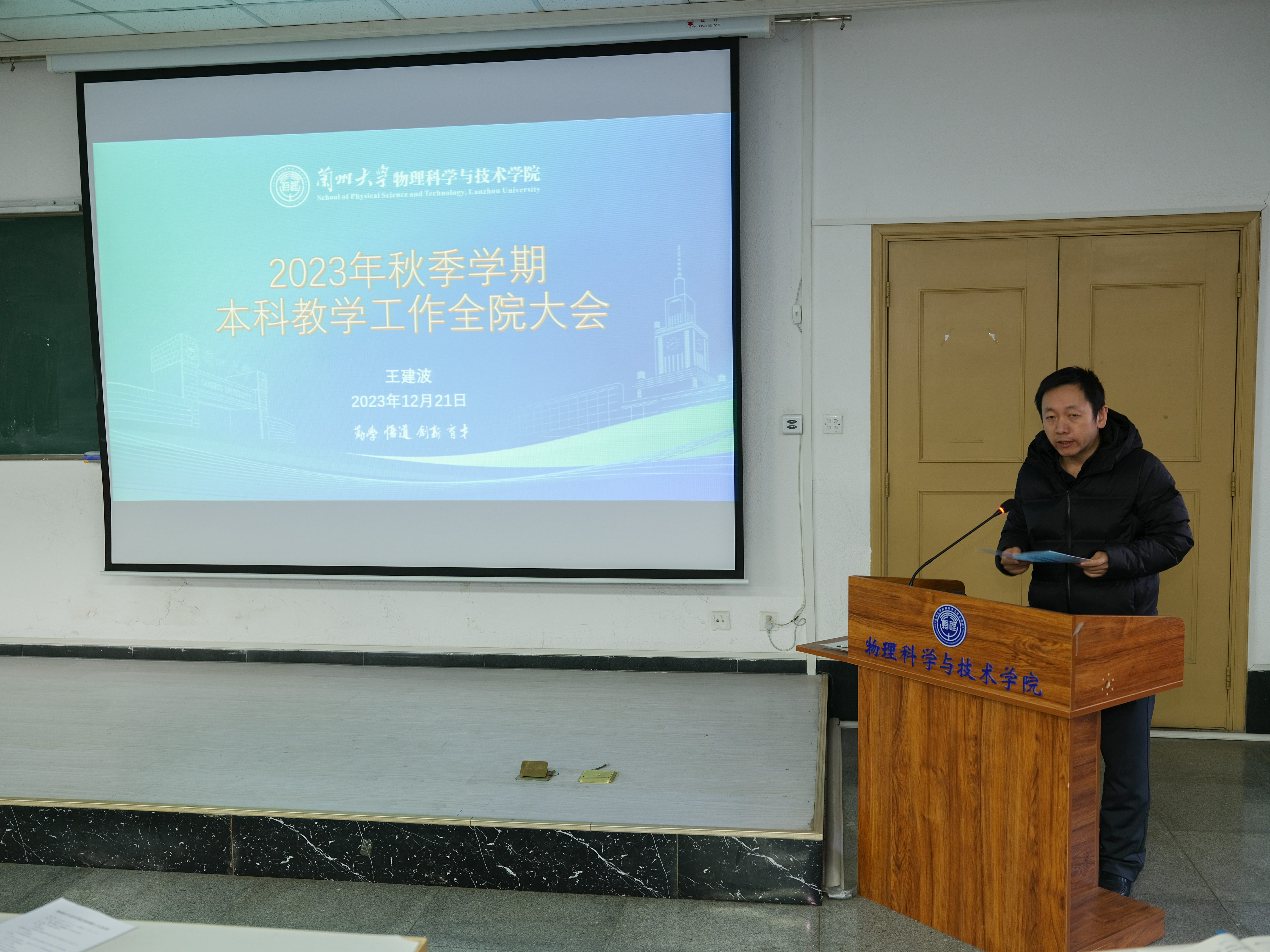 为持续推进学院本科教育教学审核评估工作,完成自评报告的查漏补缺,解决现阶段工作存在的问题和面临的难题,提高自评报告的撰写水平,12月21日下午,物理学院在城关校区格致楼1001报告厅召开本科教学工作全院大会暨本科教育教学审核评估自评报告研讨会,全体教职工参与,会议由党委书记吴国军主持。