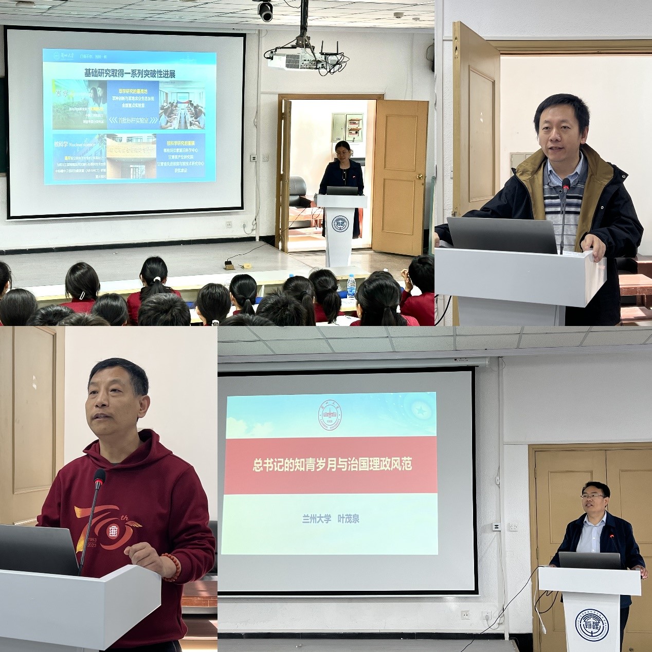 活动第一站,师生们来到格致楼,物理学院副院长王建波教授致辞,对大家的到来表示热烈的欢迎;青岛高级实验中学副校长肖亚军对同学们做出了寄语,希望同学们未来能考上理想的大学;物理学院招宣组盛英卓老师详细介绍了甘肃省的文化与历史、兰州大学的办学特色及专业设置;马克思主义学院叶茂泉老师为师生们带来了题为《总书记的知青岁月与治国理政风范》专题报告讲座。在格致楼1001报告厅,师生们聆听学校的招生政策解读和大学生活介绍,现场气氛十分热烈。