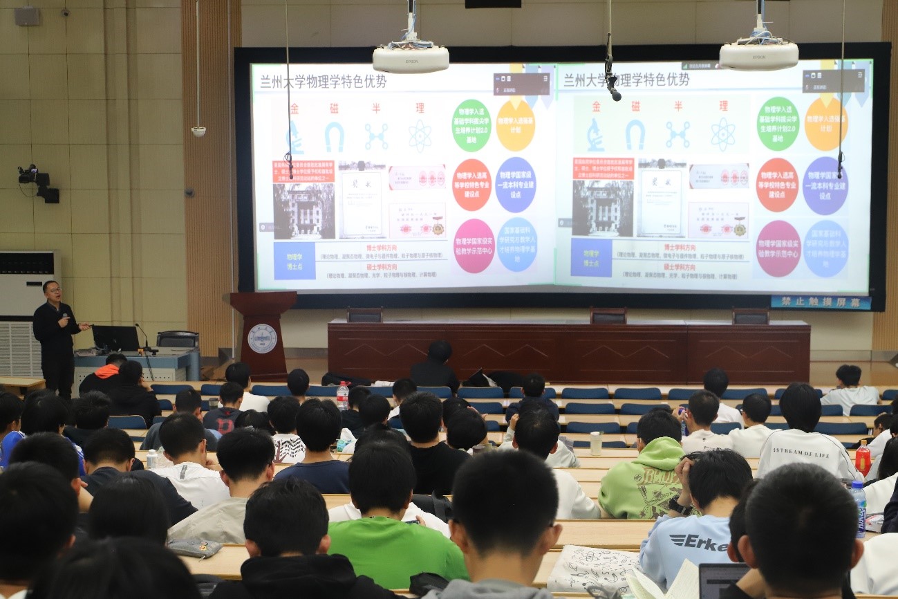 解读会开始,高大强教授对物理学专业进行了介绍,他首先强调物理学作为自然科学的基础学科,不仅对于科技进步和社会发展具有深远影响,更是培养学生逻辑思维、创新能力和科学精神的重要平台;随后介绍了兰州大学物理学“金、磁、半、理”四大方向,展示了兰州大学在物理学上的特色、优势;最后对物理学专业的人才培养方案进行了详细的解读,并对同学们未来的学习及生活提供了指导意见。