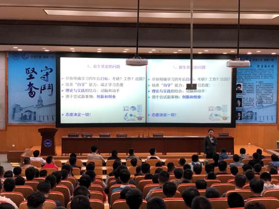 王建波老师围绕为什么学怎么学学什么三个话题展开,就同学们关心的生涯发展、学习方法、课程体系等方面进行了辅导报告。王建波老师指出,大学学习与高中学习有着较大的差别,需要同学们严格要求自己、强化日常管理、主动寻求帮助。同时,王建波老师详细介绍了学院教学改革、分级教学和学校学籍管理制度改革的主要情况,鼓励同学们在低年级夯实专业基础、谋划发展方向、全面提升能力。