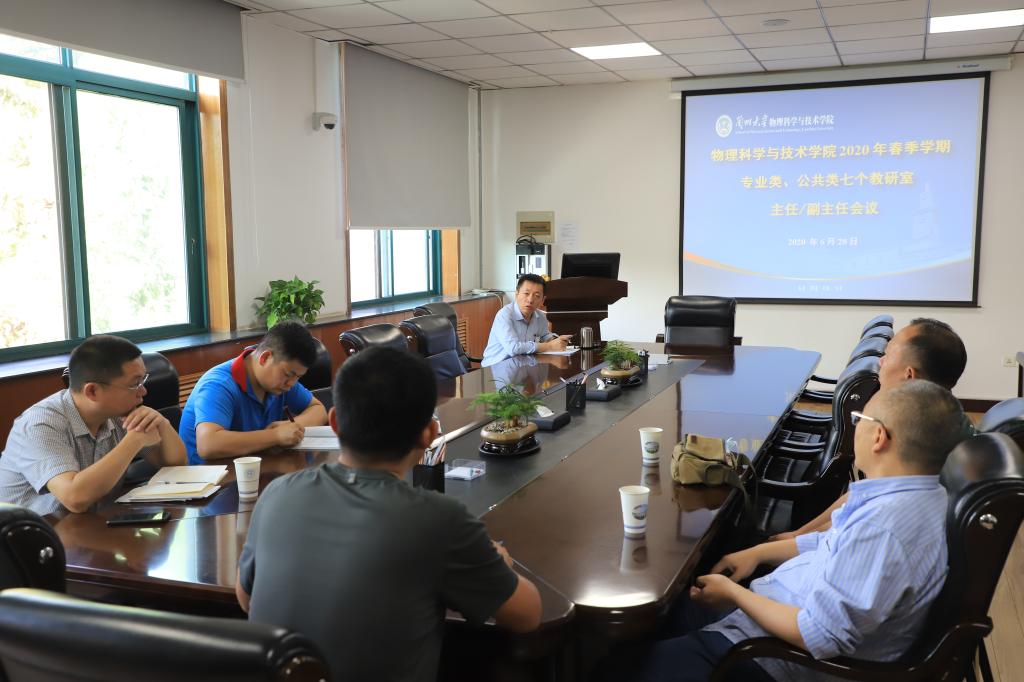 6月28日,物理学院在格致楼3022会议室召开2020年春季学期专业类、公共类七个教研室主任副主任会议,相关教研室主任、副主任参加会议。会议由主管教学副院长王建波主持。