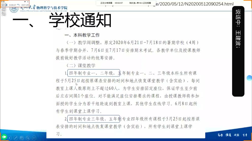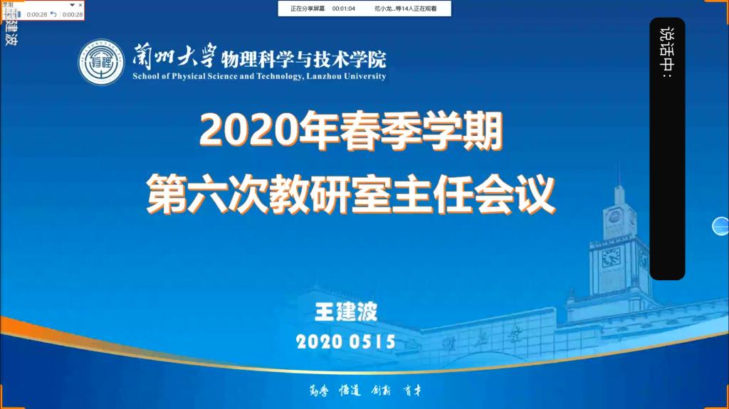 5月15日,物理学院借助QQ平台召开了2020年春季学期第六次教研室主任副主任会议。副院长刘玉孝,各教研室主任、副主任近30人参加会议。会议由教学副院长王建波主持。