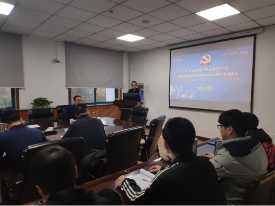 11月30日上午,在榆中校区天山堂B104教室,吴国军书记为研究生、本科生代表作专题辅导报告,学院党委委员、研工组及学工组人员与大家一起进行谈论、分享心得。