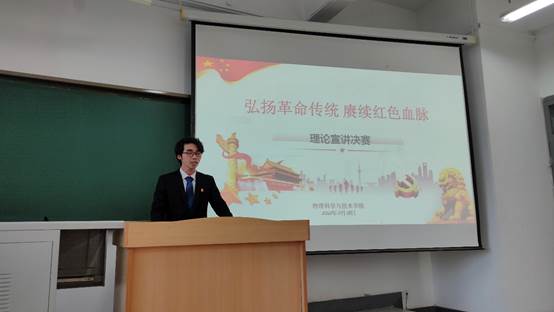 11月18日下午,学院在天山堂A405举行“赓续红色血脉,矢志爱国奋斗”学生理论宣讲活动决赛,学院党委副书记王岩、辅导员马俊、李玉琼、张明华、樊金雷出席活动,学院全体学生党员、主要学生干部现场聆听。各位参赛选手围绕建党精神、延安精神、两弹一星精神、载人航天精神、抗疫精神等开展宣讲,对伟大精神的历史背景、内涵、现实意义进行生动阐释,并着重宣讲了新时代青年学子如和践行党的精神谱系,同学们的精彩宣讲引得在场人员的阵阵掌声。2020物理学萃英班周浩冉获一等奖,