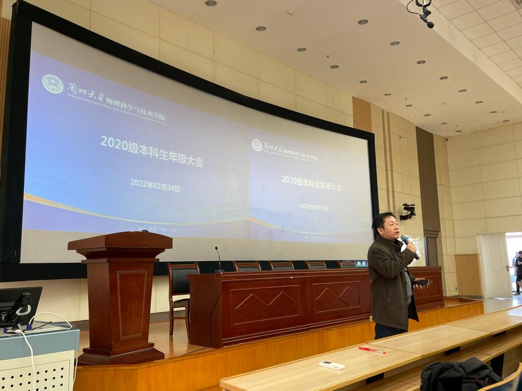 2月24日,学院在榆中校区天山堂C301召开了2020级本科生年级大会,副院长王建波、教学秘书焦巧会、兼职辅导员郭文君以及2020级全体本科生参加,会议由2020级本科生辅导员张明华主持。