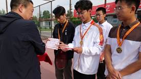 榆中校区管委会副主任梁祖强为学院代表队颁发冠军奖杯、奖牌和荣誉证书,学院参赛运动员为:2018级孟维帆、尚子杰,2020级舒琪、王登彪,2021级王子月、黄瑾媛。