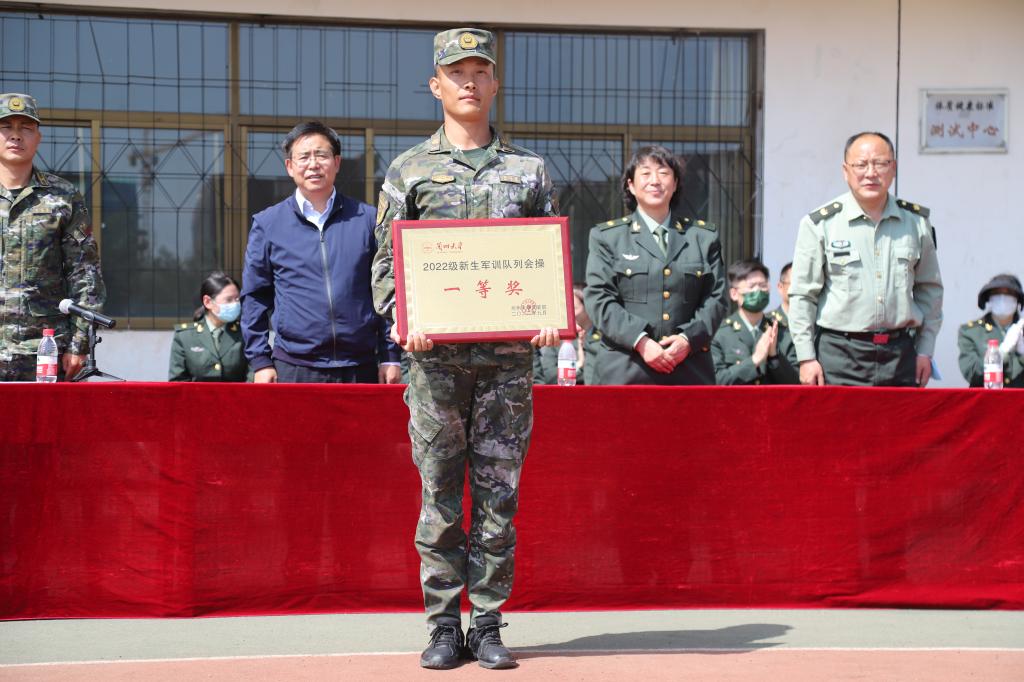 9月12日上午,2022级新生军训会操在榆中校区西区操场举行。教官带领队伍完成了一系列队列动作的展示,包括稍息、跨立、停止间转法、敬礼等。连队同学们英姿飒爽、整齐划一,最终荣获一等奖。