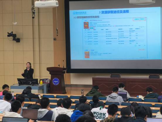 陈新兰老师从图书馆简介、图书资源及服务、资源获取途径、常见问题等方面展开介绍。陈老师首先讲述了我校图书馆创建时间、历史沿革、组织构成、空间布局、馆藏资源标识等内容,引导同学们对图书馆有了初步的了解。在图书资源及服务方面,陈老师着重介绍了我校图书馆丰富的馆藏、数据库、音像资料等,让同学们充分感受到兰大图书馆深厚的历史底蕴与文化实力,并就馆际互借以及甘肃省高校图书馆联盟的基本情况进行了说明。最后,陈老师教导同学们如何去图书馆借书、获取资源,并介绍中国图书馆图书管理法、昆仑堂索书号规定、图书排架规律等,让新生初步拥有自主查阅书籍的能力。