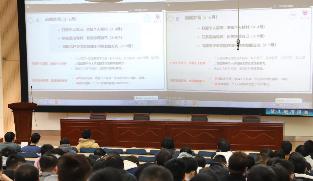 王建波就做好考研复习准备进行了详细讲解,就考研流程、考研趋势进行了分析,帮助考研同学更好了解自身的优、缺点,提醒同学们尽早确定考研专业方向,了解相应学校的历史考研科目及要求,尽早着手准备。他希望同学们注重团队协作、培养创新思维、提升实践能力,怀抱梦想、脚踏实地,在准备考研的过程中,做到战略上重视、战术上行动,打有准备之仗,诚信、踏实的做好备考准备工作。