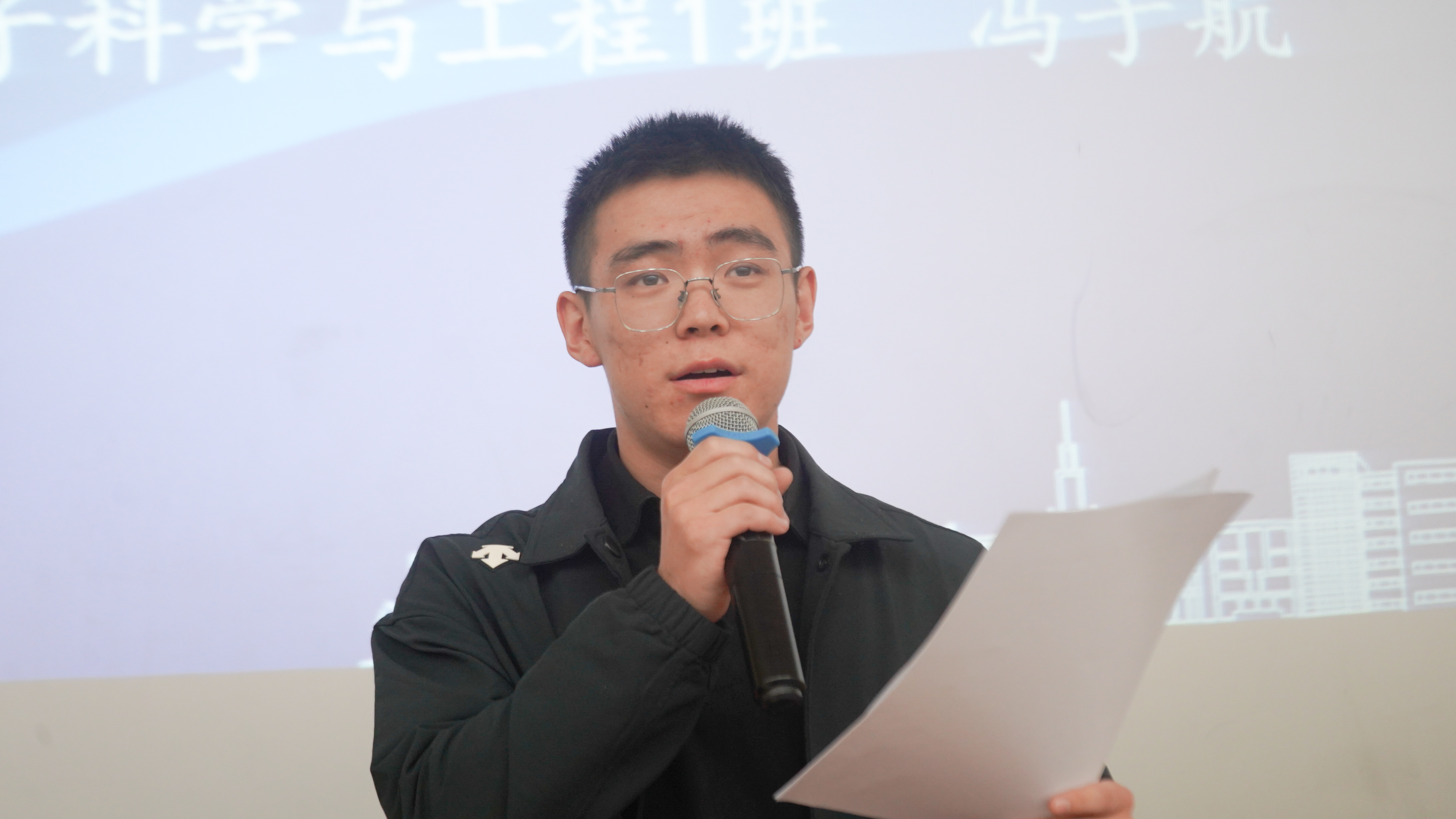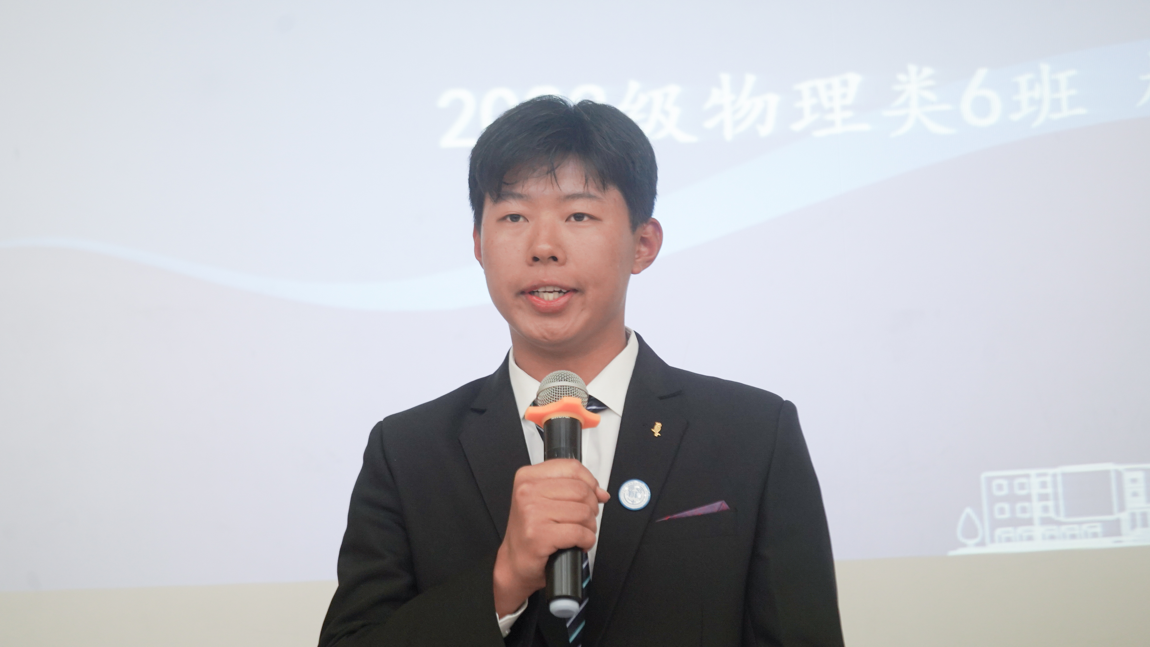 2020级微电子科学与工程1班冯子航同学代表全体在校生向2023级新同学们表示热烈欢迎,他结合自身经历,向同学们分享了自己的三点思考,希望同学们能够在大学明确目标,全方位提升自身能力;2023级物理类6班杨轶哲代表全体新生发言,对大学进行了展望和规划。