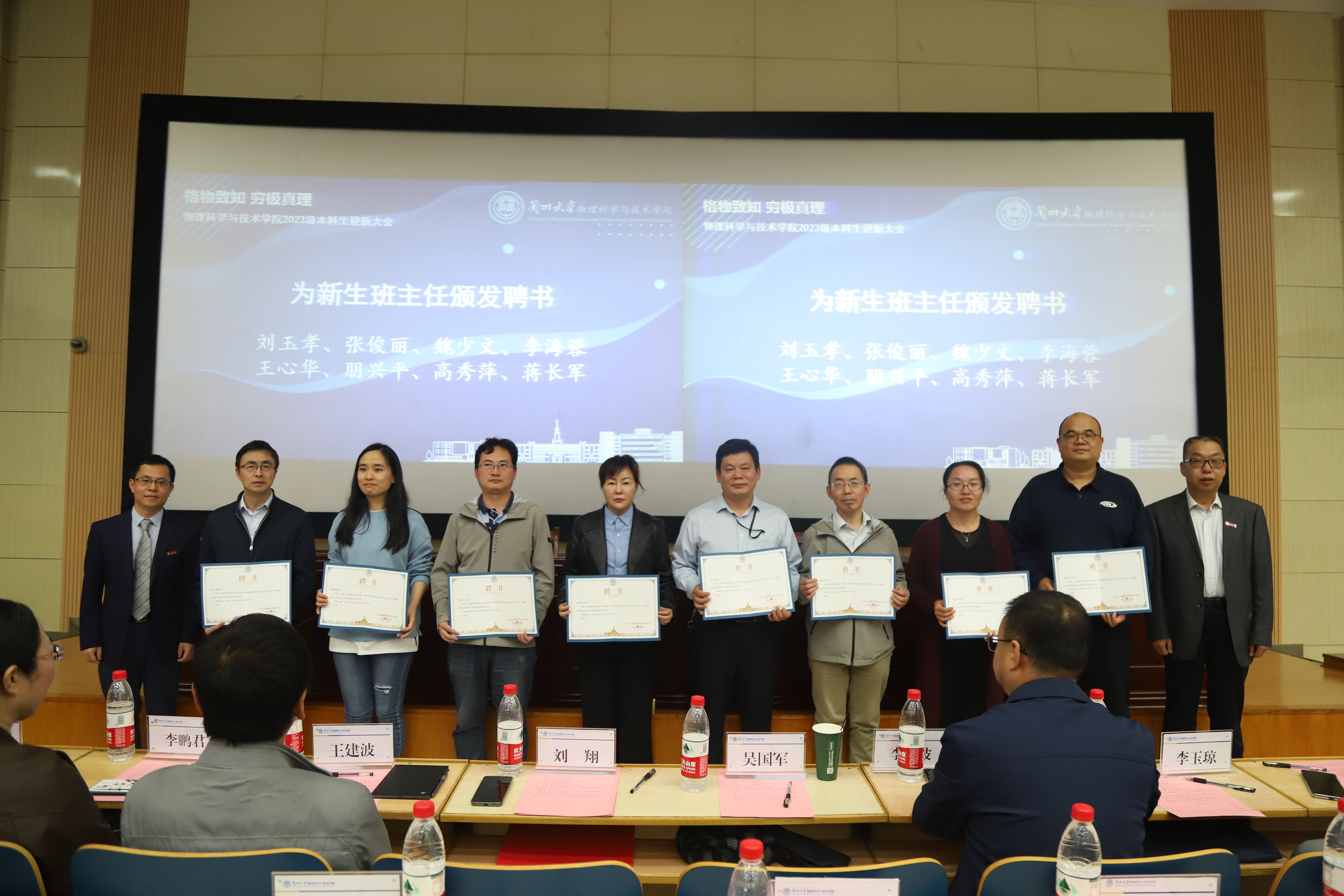 学院党政主要领导为2023级本科生班主任颁发了聘书,全体同学举起右拳庄重宣誓,将励志成为全面发展的兰大物理人。
