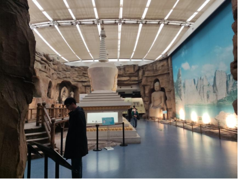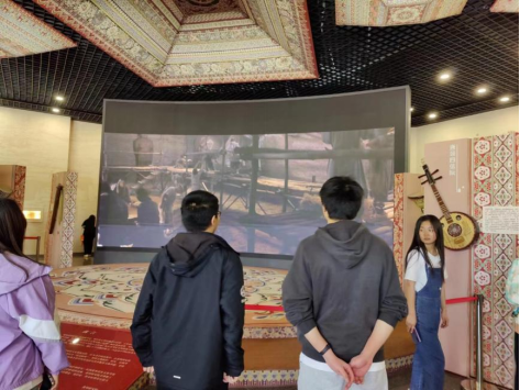 走进敦煌艺术馆,一尊尊造型各异的彩塑和一幅幅精美绝伦的丹青壁画立刻抓住了同学们的目光,大家一边欣赏数字敦煌视觉盛宴,一边聆听讲解员讲解的敦煌壁画的艺术成就和至善至美的佛教故事,更详细了解了西域佛教艺术与汉文化的融合发展历程,并为甘肃博大精深的历史文化和丰富繁盛的民族文化而深感自豪。